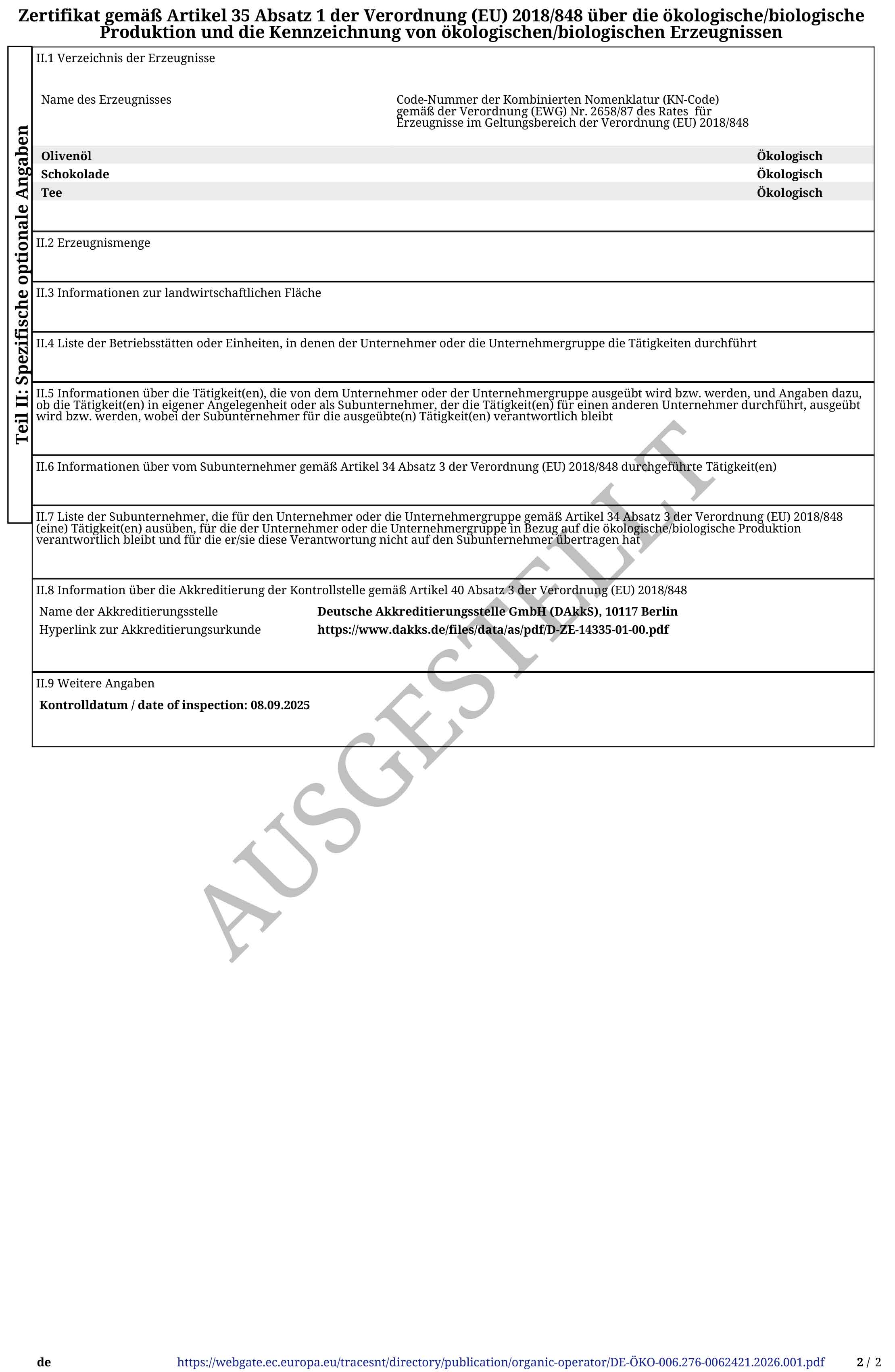 Alle in unserem Bio-Zertifikat genannten Produkte und mit dem Bio-Siegel nach EG-Öko-Verordnung (EG) Nr. 834/2007 (Kontrollstelle DE-ÖKO-070) sind Erzeugnisse aus ökologischem Landbau und weisen sich durch die Kontrollstellen-Nummer auf der Verpackung aus. Wir sind offiziell von der Control Union Certifications Germany GmbH zertifiziert und werden regelmäßig auf die Einhaltung der Bio-Richtlinien kontrolliert.